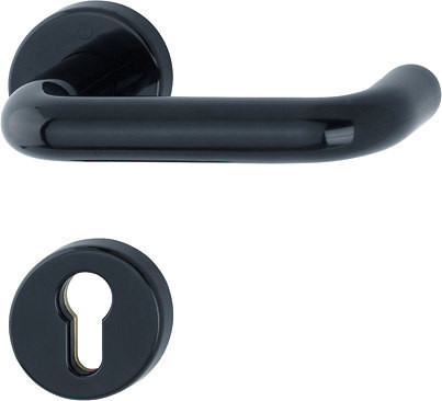 Feuerschutz-Rosetten-GarniturGarnitur / F9005 tiefschwarz / 9 mm / Vierkantstift / Profilzylinder / 40-65 mm / HOPPE-Logo / M4