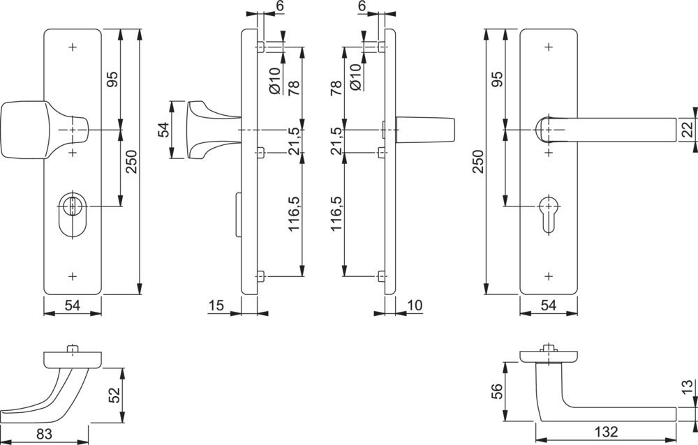 Garnitur / ES1 / F1 Aluminium silberfarben / 9 mm / FDW-Profilvollstift / Profilzylinder 72 mm / 42-47 mm / HOPPE-Logo