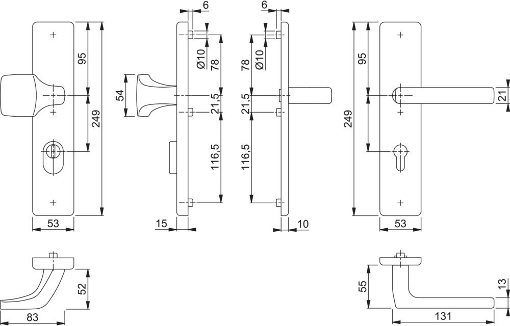 Garnitur / ES1 / F69 Edelstahl matt / 9 mm / FDW-Profilvollstift / Profilzylinder 72 mm / 42-47 mm / HOPPE-Logo