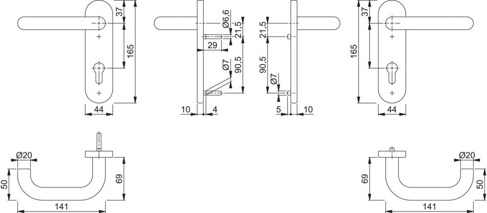 FS Türgriffgarnitur Paris 10722816 F69-S matt PZ 72 mm FS-E138/353KH