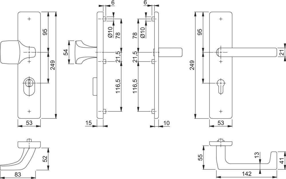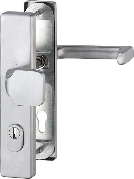 Garnitur / ES1 / F69 Edelstahl matt / 9 mm / FDW-Profilvollstift / Profilzylinder 92 mm / 67-72 mm / HOPPE-Logo