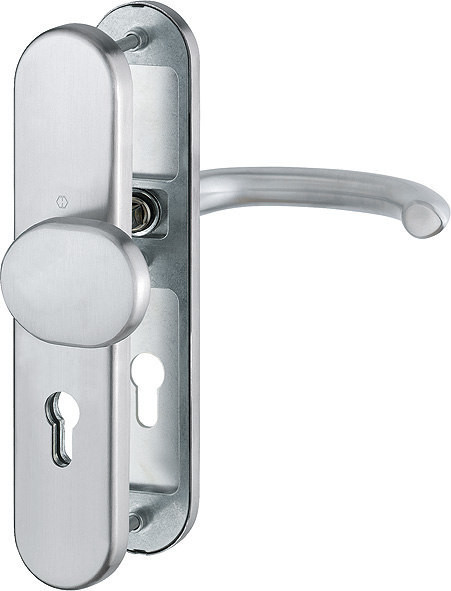 Garnitur / ES1 / F69 Edelstahl matt / 9 mm / FDW-Profilvollstift / Profilzylinder 72 mm / 42-47 mm / HOPPE-Logo