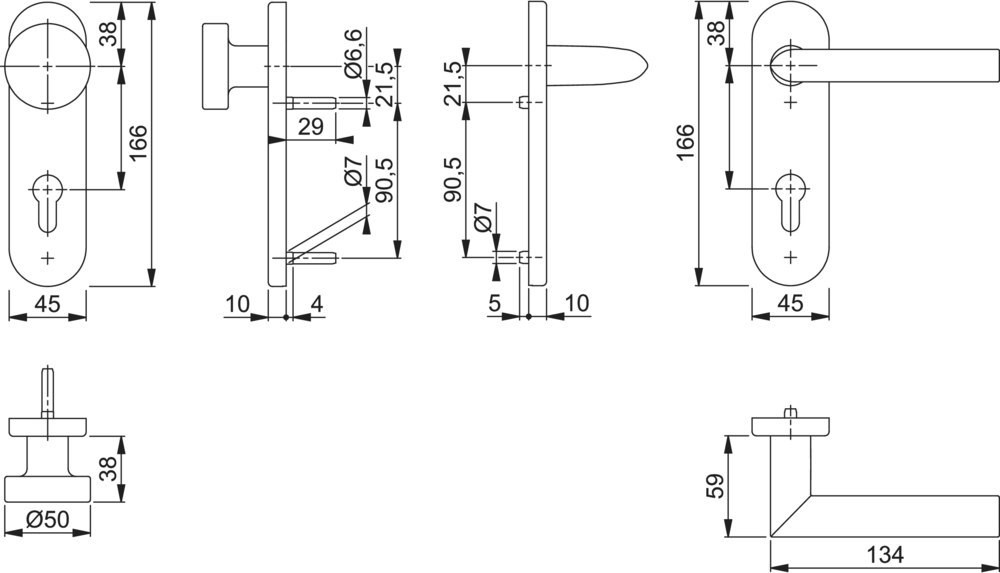 | Durchmesser Türgriff (außen) | 50 mm |