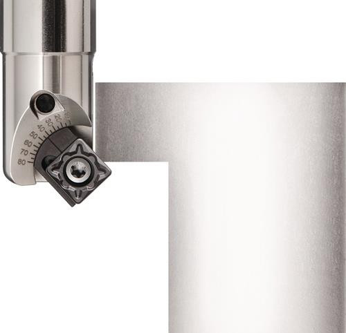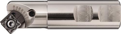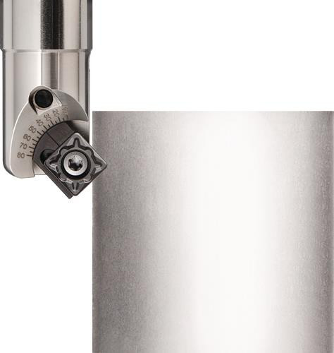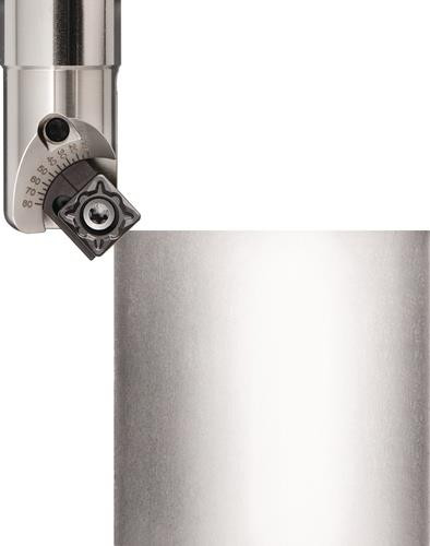 vernickelte Ausführung · mit Innenkühlung · verstellbar · 10° - 80° · universell einsetzbarer Wendeplatten-Frässenker zum Fasen, Entgraten von Kanten, Rund- und Langlöchern und Senken bei starren Einsatzverhältnissen · ruhiger Lauf und stabile Ausführung und stabile Konstruktion · Zylinderschaft mit Mitnahmefläche nach DIN 1835 B · mit SCMT auch als Rückwärtssenker einsetzbar · Verstellbereich D min - D max 10° 5 - 32 20° 6 - 33 30° 7 - 34 40° 10 - 33 45° 11 - 33 50° 13 - 32 60° 16 - 31 70° 19 - 29 80° 23 - 27 Weitere technische Eigenschaften: · Oberfläche: vernickelt · Wendeplatte: TCMT 16T3, SCMT 1204 · Einsatzlänge: 60mm