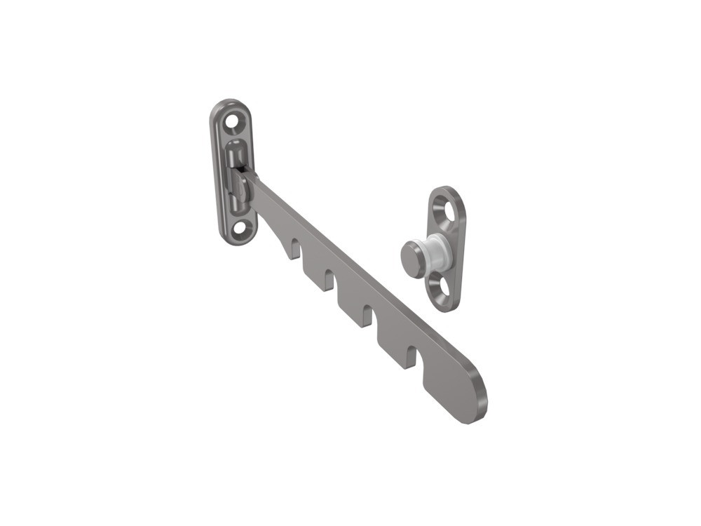 SIEGENIA Fensterfeststeller Titan; Material: Stahl; Einsatzbereich: Drehkipp; Farbton: dunkelbronze; Oberfläche: beschichtet; Zusatzinformation: mit Anschraubplatte; DIN-Richtung: DIN Links-Rechts; Flügelanzahl: einflügelig; Fensterwerkstoff: Kunststoff,Holz; Basis: Fensterfeststeller; Ausführung: 4 Spalteinstellungen