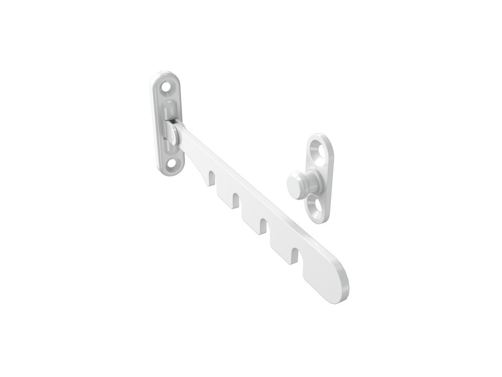SIEGENIA Fensterfeststeller Titan; Material: Stahl; Einsatzbereich: Drehkipp; Farbton: signalweiß; Oberfläche: beschichtet; Zusatzinformation: mit Anschraubplatte; DIN-Richtung: DIN Links-Rechts; Flügelanzahl: einflügelig; Fensterwerkstoff: Kunststoff,Holz; Basis: Fensterfeststeller; Ausführung: 4 Spalteinstellungen