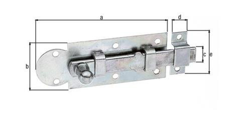 mit Knopfgriff · Material: Stahl, Oberfläche: galvanisch verzinkt, dickschichtpassiviert · Ausführung: gerade, mit befestigter Schlaufe Weitere technische Eigenschaften: · Maß e: 30mm · Maß a: 80mm · Form: gerade · Ausschub: 19,5mm · Maß b: 30mm · Maß c: 10mm · Oberfläche: galvanisch verzinkt, dickschichtpassiviert · Maß d: 10mm