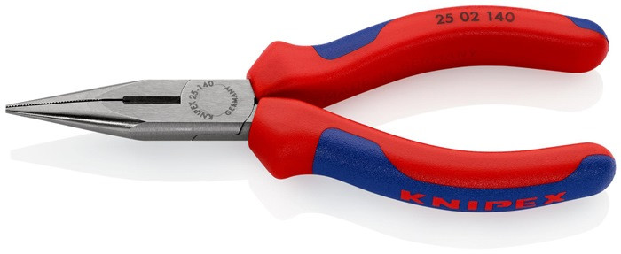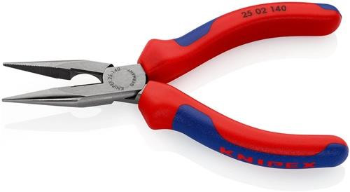 mit Schneide (Radiozange) · gerade, flach-runde Backen · Greifflächen gezahnt · Schneiden zusätzlich gehärtet, Schneidenhärte ca. 61 HRC · Vanadin-Elektrostahl, geschmiedet, mehrstufig ölgehärtet Zange schwarz atramentiert · Kopf poliert Weitere technische Eigenschaften: · Form: 0 · Backenlänge: 42mm · Spitzenbreite: 2,5mm · Norm: DIN ISO 5745 · Spitzenstärke: 2mm · Zange: schwarz atramentiert · Backenausführung: flach/rund · Griff: Mehrkomponenten-Hüllen