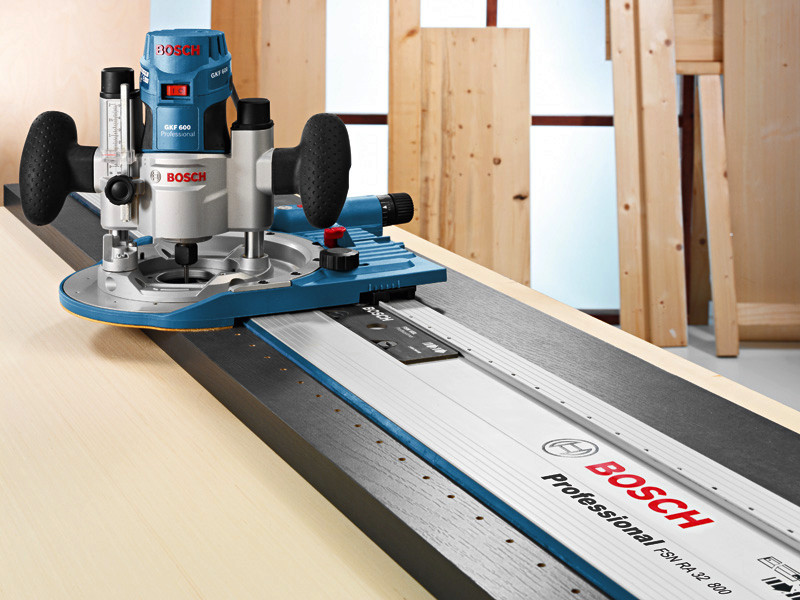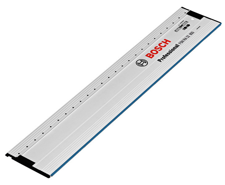 Systemzubehör FSN RA 32 800, Die 800-mm-Führungsschiene FSN RA 32 800 Professional ermöglicht genaue Lochraster beim Möbelbau. Sie bietet zusätzlich zu ihrer Standardfunktion höchste Funktionalität dank ihres 32-mm-Lochrastersystems. Die qualitativ hochwertige Führungsschiene ermöglicht eine präzise Führung und ist perfekt kompatibel mit allen zugehörigen Elektrowerkzeugen. Dank der leicht austauschbaren, rutschfesten Gummistreifen und des Splitterschutzes bietet sie absolute Kontrolle während der Verwendung und sorgt für eine saubere Schnittkante. Diese Führungsschiene eignet sich für geführtes Schneiden und Fräsen bei Anwendungen mit 32 mm Lochabstand im Lochraster. Das Gerät ist mit allen Bosch Professional GKS G Kreissägemodellen und GKT Professional Tauchsägen sowie bestimmten GST Professional Stichsägen und GOF Professional Fräsen mit einem Adapter kompatibel. Die 800-mm-Führungsschiene FSN RA 32 800 Professional besitzt einen Lochabstand von 32 mm im Lochraster und eine Kunststoffkappe zur Werkzeugfixierung.