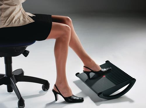 entlastet Füße und Beine · entspannt die Muskulatur · fördert die richtige Sitzhaltung · Kunststoff · von beiden Seiten nutzbar · die eine Seite mit fester Schrägstellung, die andere Seite mit stufenloser Wippfunktion