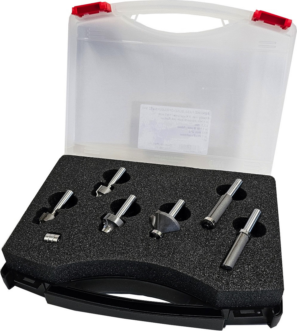 GUHDO HW-Abrund- Bündig- Fasefräser-Satz 6-teilig in Kunststoffbox , Schaft 8 mm