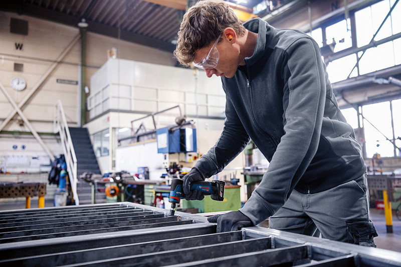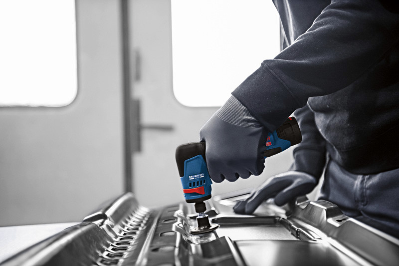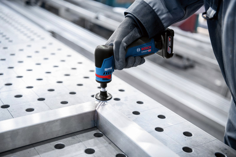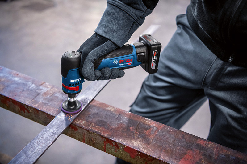 Geradschleifer GWG 12V-50 S, Dank seines kraftvollen bürstenlosen Hochleistungsmotors und hohem Drehmoment erledigt der GWG 12V-50 S Professional alle Schleifarbeiten schnell und mühelos. Seine ausgezeichnete Ergonomie mit einem extrem leichten und kompakten Design mit schmalem Griffumfang sorgen für ermüdungsfreies Arbeiten, sogar an engen Stellen. Der Gasgebeschalter und die fünf Drehzahlstufen des 12V-Akku-Schleifers erlauben eine perfekte Geschwindigkeitskontrolle für verschiedenste Anwendungen und optimale Ergebnisse. Der GWG 12V-50 S ist vielseitig einsetzbar zum Schleifen, Entgraten, Reinigen und Vorbereiten von Oberflächen sowie zum Entfernen von Schweißnähten und Schweißpunkten, insbesondere auf Metall. Er ist kompatibel mit verschiedenen marktgängigen 50-mm-Schleifscheiben sowie 6-mm- und 8-mm-Spannzangen. Außerdem verfügt er über ein innovatives User Interface mit Anzeige von Drehzahlstufe und Akkuladung. Bequeme Handhabung dank seiner innovativen Spindelarretierung für einen leichten Zubehörwechsel. Spannzange mit Überwurfmutter 6 mm (2 608 570 084). Schraubenschlüssel. L-BOXX 102 (1 600 A01 2FZ). 1/2 L-BOXX-Einlage für Ladegerät (1 600 A00 2WY). 1/2 L-BOXX-Einlage für GWG 12V-50 S (1 600 A02 K82)