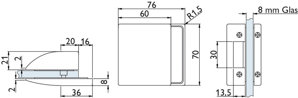 Glastür-Gegenkasten 6144 MAGNETIC GKS - Bari kurze Ausführung mit durchgehender Anschlagplatte mit Magneteinsatz Oberfl. 60 (Edelstahl matt)