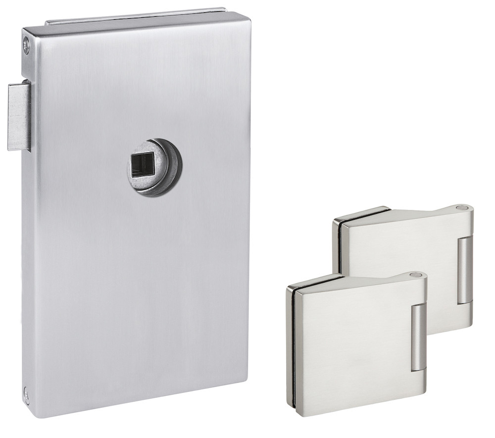Glastür-Schlosskasten 6051 OL - Molina ohne Lochung - DIN links inkl. Bandpaar 6325-20 Oberfl. 20 (Edelstahlfarben)