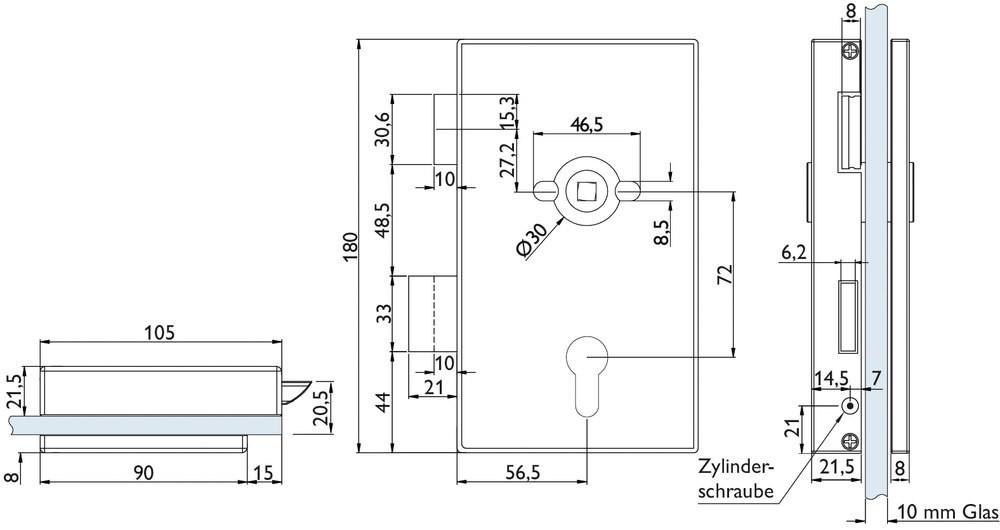 | Produkttyp (Hersteller) | Glastür-Schlosskasten |