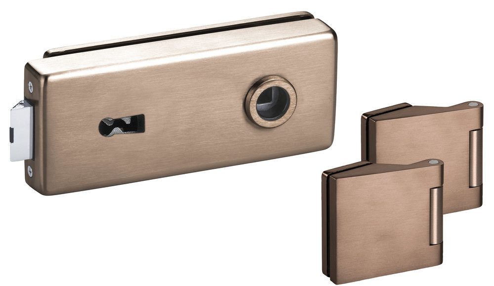 Glastür-Schlosskasten 6082 BB - Genova Buntbart gelocht (inkl. 1 Schlüssel) mit Bandpaar 6325 Oberfl. 71 (Bronzefarben matt)