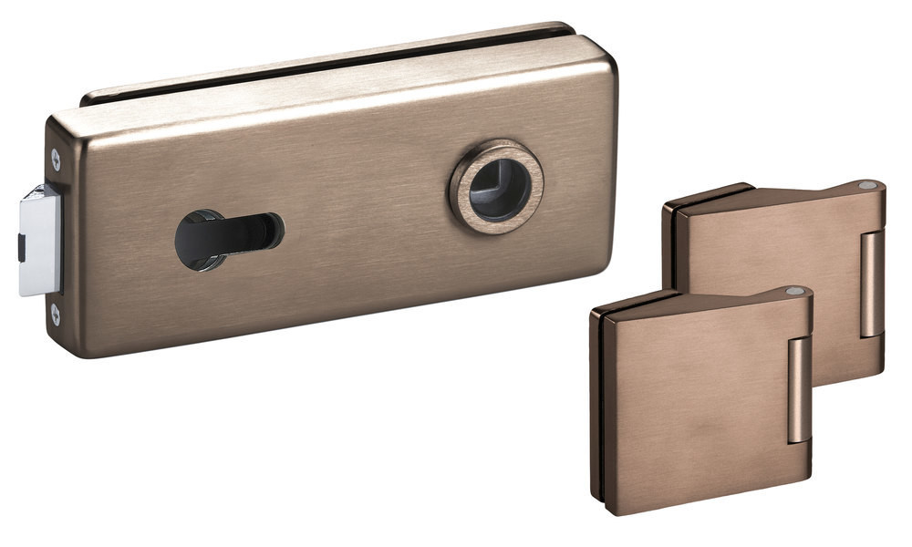 Glastür-Schlosskasten 6083 PZ - Genova PZ gelocht mit Bandpaar 6325 Oberfl. 71 (Bronzefarben matt)