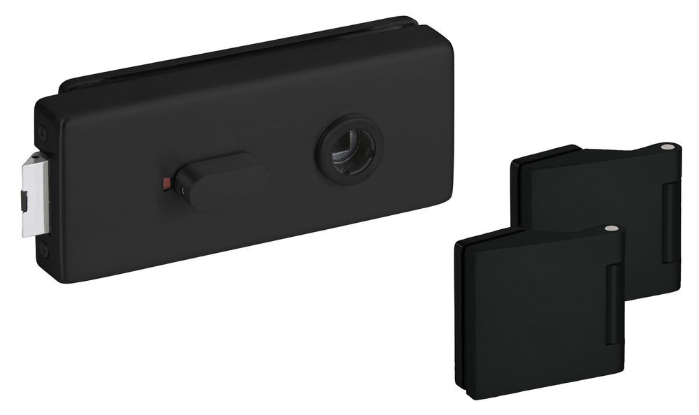 Glastür-Schlosskasten 6086 BAD - Genova Verstellbar Universell Ls/Rs-mit rot/weiß Anzeige inkl. Bandpaar 6325 Oberfl. 74 (Classic Black, ähnl. RAL 9005)