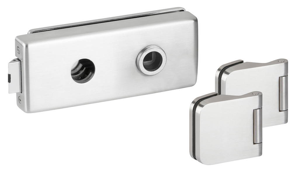 Glastür-Schlosskasten 6088 RZ - Genova Rundzylinder-Lochung Ø=22 mm inkl. Bandpaar 6315 Oberfl. 60 (Edelstahl matt)