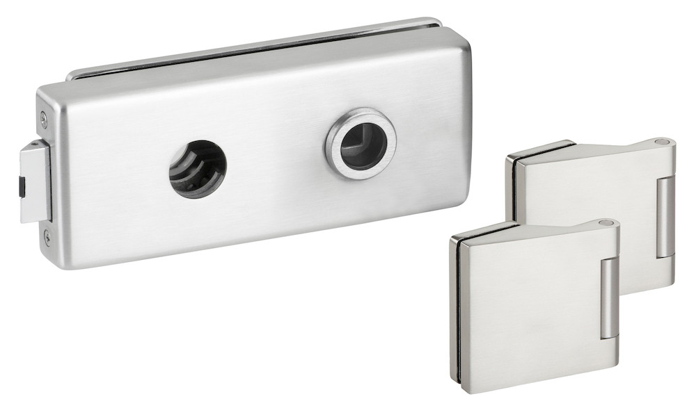 Glastür-Schlosskasten 6088 RZ - Genova Rundzylinder-Lochung Ø=22 mm inkl. Bandpaar 6325 Oberfl. 60 (Edelstahl matt)