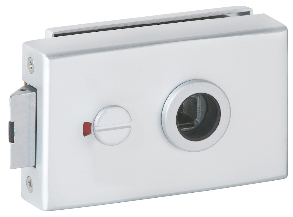 Glastür-Schlosskasten 6096 BAD - Arco DIN rechts auswärts - mit rot/weiß Anzeige Verriegelungshebel auf Schlossgegenseite Oberfl. F1 (silberfarben eloxiert)