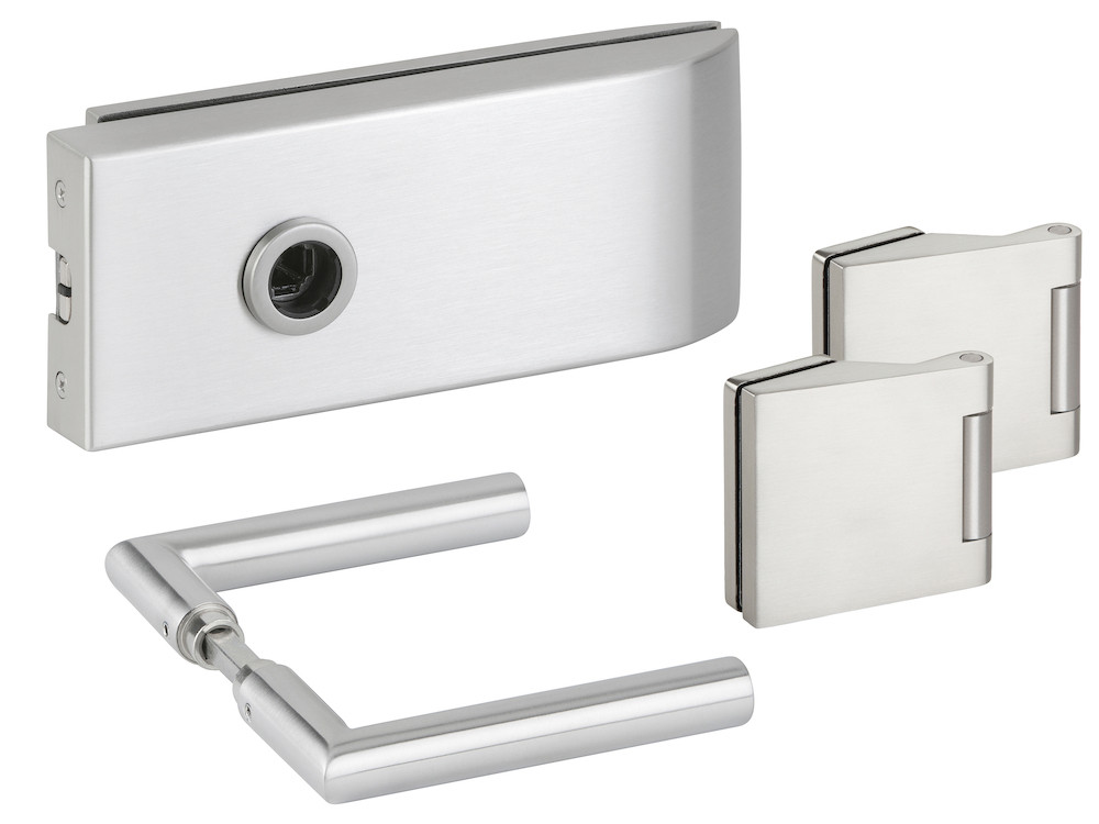 Glastür-Schlosskasten 6141 MAGNETIC OL - Bari ohne Lochung inkl. Bandpaar 6325 und Drückerpaar 1802-60 Oberfl. 60 (Edelstahl matt)