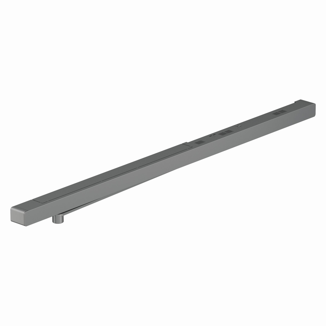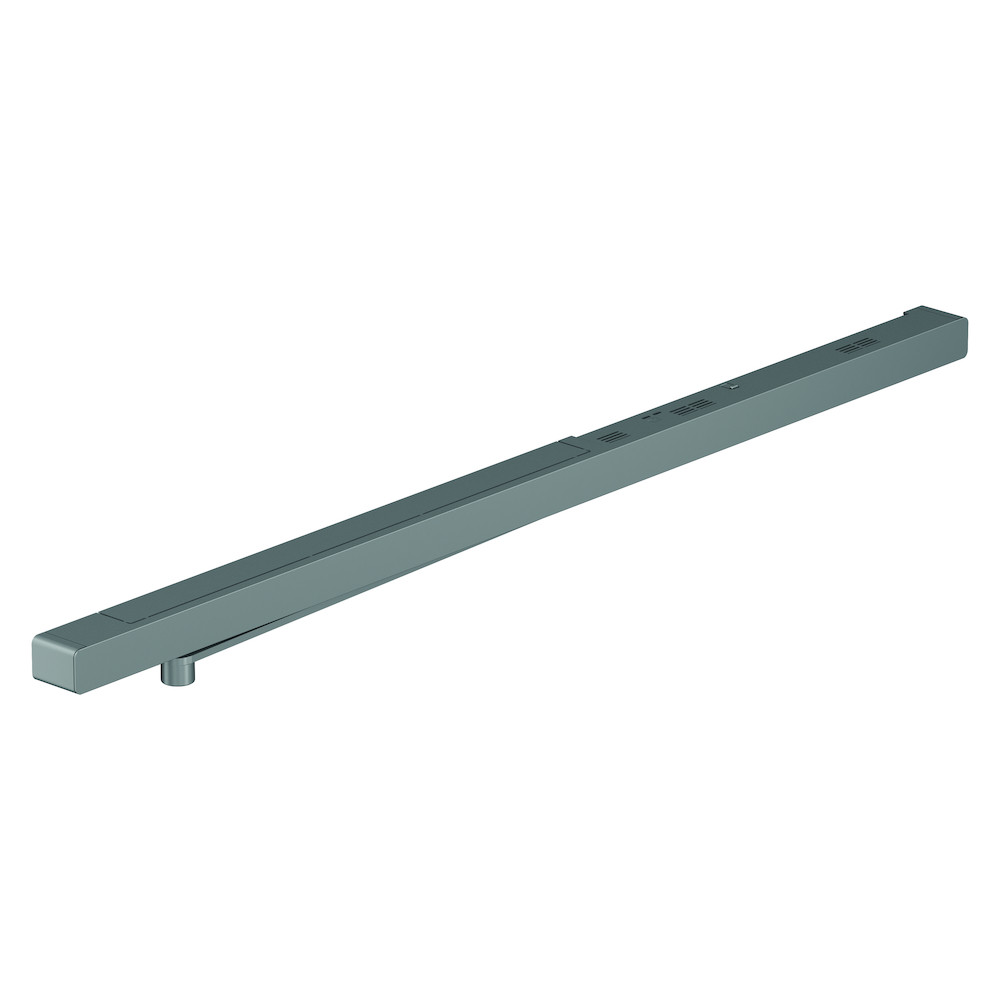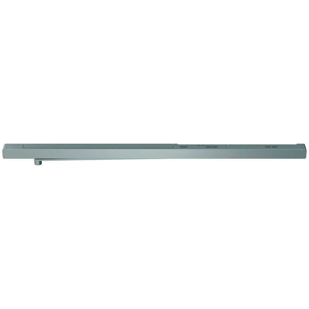 Gleitschiene im XEA Design, mit einstellbarer elektromechanischer Feststellung, mit variablem Feststellpunkt zwischen 80°-140°, mit integriertem Rauchmelder + Netzteil. Potentialfreier Wechselkontakt + Anschlussklemmen für externe Handauslösung. Eingangsspannung 230 V AC, Betriebsspannung 24 V DC. Edelstahlfarben P 700