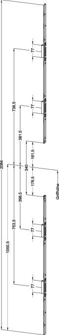 WINKHAUS Schließleiste U26-61 MV4; Produkttyp: Schließleiste; Produkttyp (Hersteller): Schließleiste; Ausführung: 2-teilig; Verriegelungsart: Schwenkhaken; Stulpform: U-Stulp; Maßvariante/Typ: MV4; Material: Stahl; Einsatzbereich: Mehrfachverriegelung; Türart: Vollblatt; Türausprägung: stumpf; Türflügelanzahl: einflügelig; Türwerkstoff: Kunststoff; Stulpausführung: kantig; DIN-Richtung: DIN Links-Rechts; geeignet: für Mehrfachverriegelung mit 4 Zusatzkästen; Zusatzfunktion-/Ausstattung: Fallenauflauf,Mit Tasche,Verstellung obenliegend; Farbton: silberfarbig; Oberfläche: matt verchromt, gebürstet; Stulpbreite: 26 mm; Stulplänge: 872 mm; Stulp Prägung: SKG2*; Profilsystem: Trocal,Rehau,Dimex,Schüco,Tryba,Aluplast; Zusatzinformation: Obenliegende Verstellung
