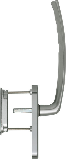Hebe-/Schiebetür-Garnitur mit MuschelGarnitur / F9 Aluminium stahlfarben / 10x73 mm / ungelocht / 75-80 mm / 180° / HOPPE-Logo