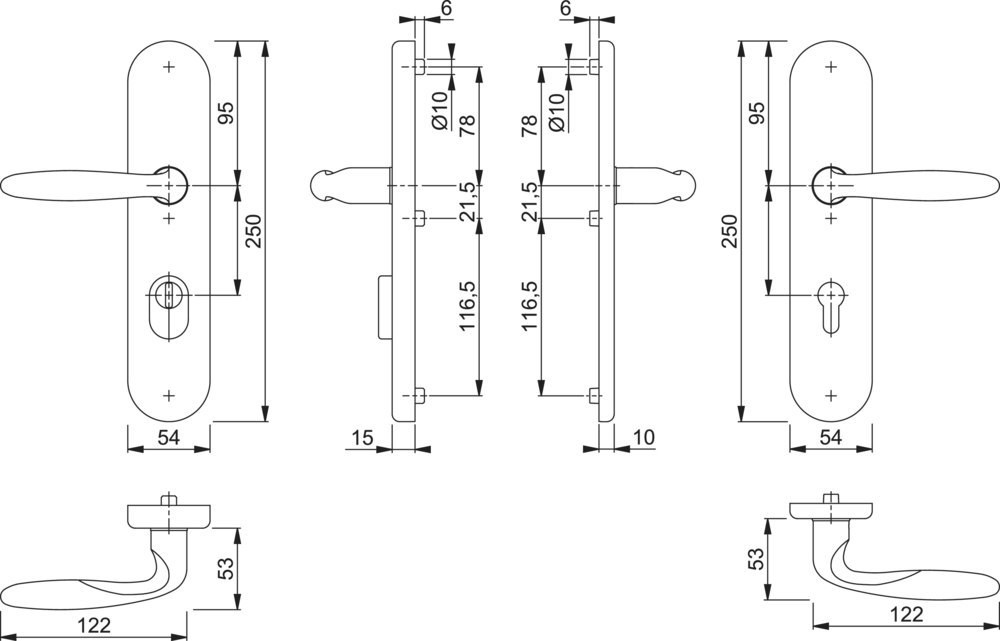 HT Türgriffgarnitur ES1 Verona 3670202 F77-R Messing poliert Resista 92 mm PZ