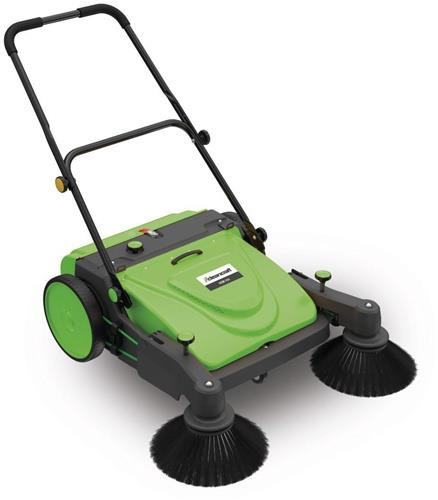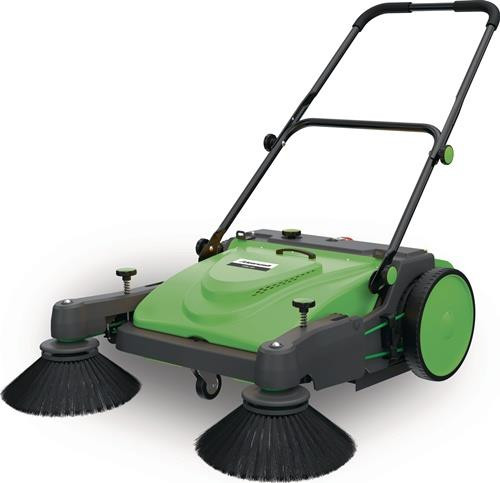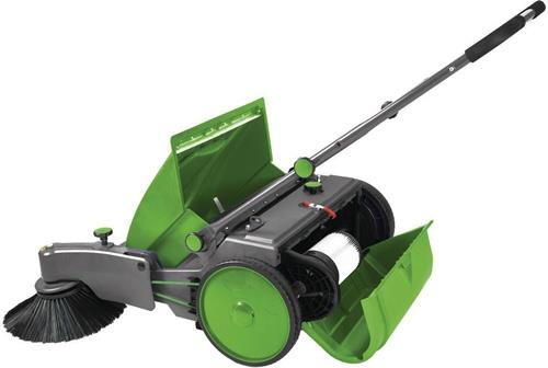 für Kehrgut aller Größen, von flach liegendem Papier bis hin zu Getränkedosen · höhenverstellbare, verschleißfeste Polyamid Kehrwalzen und Seitenbesen für unterschiedliche Bodenverhältnisse · zwei integrierte Kehrgutbehälter · Staubfilter · einklappbarer Griff Weitere technische Eigenschaften: · Höhe: 930mm · Breite: 970mm · Länge: 1280mm · Antrieb: manuell · Anzahl der Seitenbesen: 2 · Arbeitsbreite mit Seitenbesen: 950mm · Bürstenantrieb: manuell · Entleerung des Kehrgutbehälters: manuell · Filtersystem: ja · Kehrgutbehälter: ja