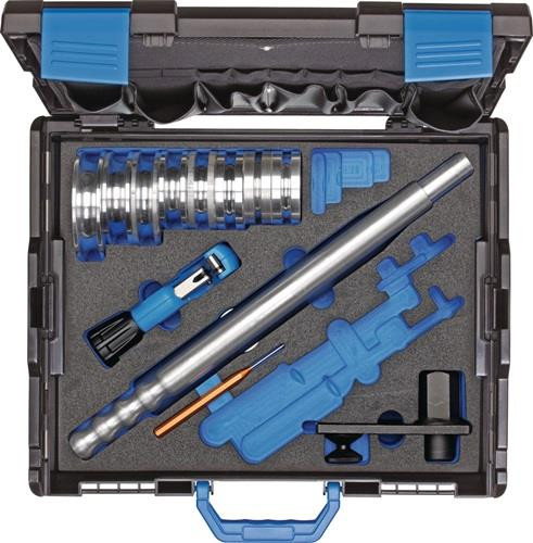 für Präzisionsstahlrohre EN 10305-3 (DIN 2394), Hydraulikrohre EN 10305-1 (DIN 2391) mit Wandstärken von 1 - 2 mm sowie biegefähige Edelstahlrohre mit Wandstärken von 1 - 1,5 mm · zum Einspannen im Schraubstock oder stationär in Verbindung mit Untergestell No. 268500 · blau lackiert, mit schwarzen Kunststoffgriffen, Ausf. 278601 mit steckbarem Aluminium-Biegehebel Weitere technische Eigenschaften: · Gewicht: 8,3kg · Inhalt: 12-teilig · Typ: 1100-278601