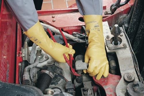 nach EN 388 · Kat. II · Material: BW-Trikot mit Nitril · beschichtet mit Spezialnitril · gute Temperaturbeständigkeit · feuchtigkeitsabweisend · Lebensmittelunbedenklichkeit gem. EU 1935/2004 · gute mechanische Beständigkeit · gute Griffigkeit bei nassen Teilen · zusätzlicher Unterarmschutz durch verlängerte Stulpe · weite Stulpe für schnelles An- und Ausziehen · Anwendung: Automobilindustrie, Maschinenbau, Transportarbeiten, Feinmechanik, Verpackungsindustrie, Bauindustrie, Arbeiten mit nassen und öligen Teilen Weitere technische Eigenschaften: · Werkstoffeignung Lebensmittel: sehr gut geeignet · Werkstoffeignung Industrie: sehr gut geeignet · Werkstoffeignung Montage + Werkstatt: bedingt geeignet · Werkstoffeignung Handwerk: bedingt geeignet · Abriebfestigkeit: 3 · Schnittfestigkeit (Schneidetest): 1 · Werkstoffeignung Bau + Garten: bedingt geeignet · Weiterreißfestigkeit: 1 · Stichfestigkeit: 1