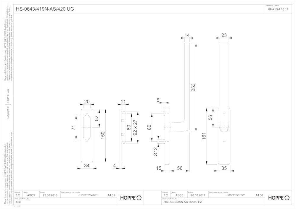 Hebe-/Schiebetür-Garnitur mit MuschelGarnitur / F9 Aluminium stahlfarben / 10x73 mm / ungelocht / 75-80 mm / 180° / HOPPE-Logo