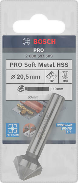 Präzises Entgraten und Senken in Weichmetall! Drei 90°-Schnittkanten für präzises Bohren durch weiches Metall Benötigst du einen zuverlässigen Kegelsenker zum präzisen Entgraten und Senken in weichem Nichteisenmetall? Dann ist der PRO Soft Metal HSS Kegelsenker-Bohrer die richtige Wahl. Wir haben ihn für das effektive Entgraten und Senken vorgebohrter Löcher entwickelt. Der PRO Soft Metal HSS Kegelsenker-Bohrer ist eine gute Wahl für Bauarbeiter und Installateure, die vorgebohrte Löcher in weichem Metall wie Aluminium und Kupfer entgraten und versenken müssen. Der Kegelsenker besteht aus Schnellarbeitsstahl (HSS) für Stärke und Hitzebeständigkeit. Er verfügt über drei 90°-Schnittkanten, mit denen du saubere und gratfreie Senklöcher genau dort ansetzen kannst, wo sie sein sollen.