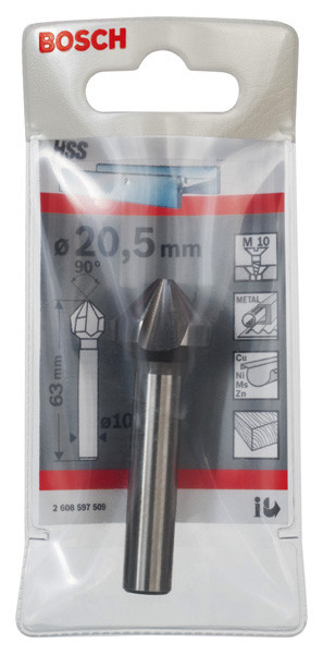 Kegelsenker mit zylindrischem Schaft, 20,5, M 10, 63 mm, 10 mm