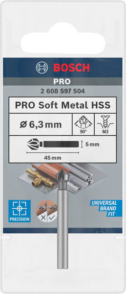 Präzises Entgraten und Senken in Weichmetall! Drei 90°-Schnittkanten für präzises Bohren durch weiches Metall Benötigst du einen zuverlässigen Kegelsenker zum präzisen Entgraten und Senken in weichem Nichteisenmetall? Dann ist der PRO Soft Metal HSS Kegelsenker-Bohrer die richtige Wahl. Wir haben ihn für das effektive Entgraten und Senken vorgebohrter Löcher entwickelt. Der PRO Soft Metal HSS Kegelsenker-Bohrer ist eine gute Wahl für Bauarbeiter und Installateure, die vorgebohrte Löcher in weichem Metall wie Aluminium und Kupfer entgraten und versenken müssen. Der Kegelsenker besteht aus Schnellarbeitsstahl (HSS) für Stärke und Hitzebeständigkeit. Er verfügt über drei 90°-Schnittkanten, mit denen du saubere und gratfreie Senklöcher genau dort ansetzen kannst, wo sie sein sollen.