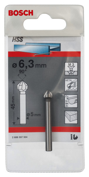 Kegelsenker mit zylindrischem Schaft, 6,3, M 3, 45 mm, 5 mm