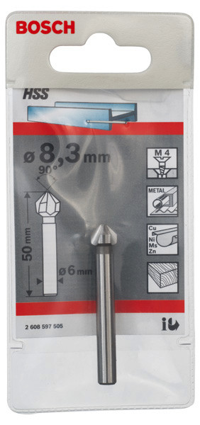 Kegelsenker mit zylindrischem Schaft, 8,3, M 4, 50 mm, 6 mm