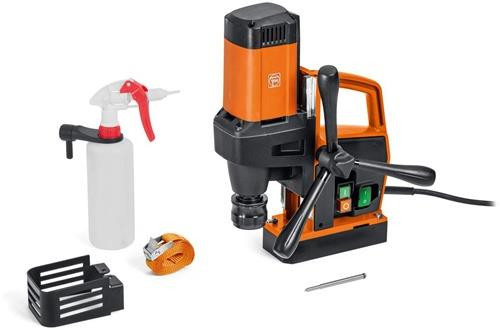 kleine und extrem leichtgewichtige 1-Gang Eco-Magnet-Kernbohrmaschine mit Basisfunktionalität · innenliegende Motorkabelführung · Innenkühlung · seitenwechselbares Vorschubhandrad · Personen-Schutzschalter · langlebiges Getriebedesign mit bis zu 400 Stunden Betriebszeit · werkzeugloses Kernbohrer-Schnellwechselsystem Weitere technische Eigenschaften: · Magnetfuß: 175x80mm · prüfpflichtig: ja · Hub: 90mm · Netzspannung: 230 V / 50 Hz · Kabel mit Stecker 3m· Kernbohrerwechsel werkzeuglos· Leerlaufdrehzahl 700min-1· Leistungsabgabe 770W· Produktvorteile Für den harten Einsatz dank höchster Verarbeitungsqualität und innenliegender Motorkabelführung./Kompromisslose Lebensdauer durch extra langlebiges Getriebedesign mit bis zu 400 Stunden Betriebszeit./Leichtgewichtig mit FEIN Hochleistungsmotor und hohem Drehmoment für sämtliche Kernbohrarbeiten./Hervorragendes Preis-/ Leistungsverhältnis./Werkzeugloses Kernbohrer-Schnellwechselsystem./Innenkühlung./Hohe Magnethaltekraft./Seitenwechselbares Vorschubhandrad./Gute Zugänglichkeit in beengten Bediensituationen./Personen-Schutzschalter.· Kernbohrer Bohrtiefe max. 50mm