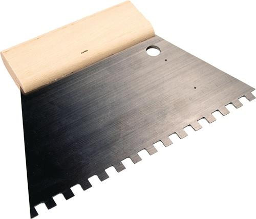 Kleberspachtel L.128mm B.180mm Zahn 6x6mm rostfr.VA C2 Buchenholzgriff