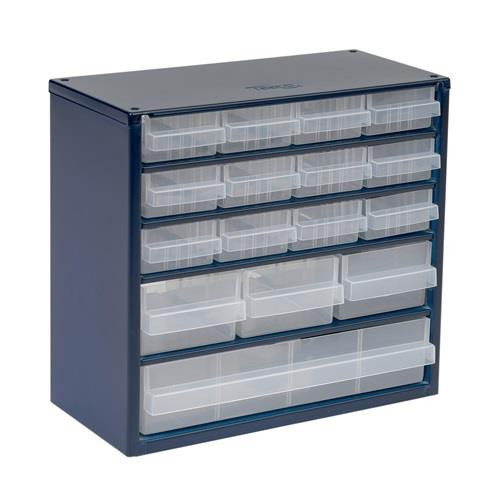 Kleinteilemagazin B.306xT.150xH.282mm Stahlblech dkl.-blau/transp./Schubl.a.PP