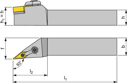 zum Außendrehen Weitere technische Eigenschaften: · l2 max: 32mm · Oberfläche: vernickelt · Ersatzteile: MV 2 · Wendeplatte: VN.. 1604.. · f: 32mm · b: 25mm · l1: 150mm · h=h1: 25mm · Anwendungsbereich: Außendrehen