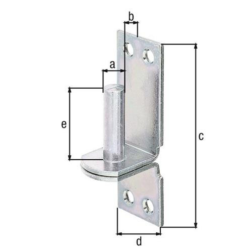 Haken · Stahl roh, Oberfläche: galvanisch verzinkt, dickschichtpassiviert Weitere technische Eigenschaften: · Maß e: 40mm · Maß a: 13mm · Maß b: 11mm · Maß c: 100mm · Maß d: 35mm