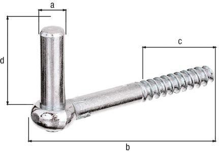 J-Haken mit angeschnittenem Gewinde · Material: Stahl roh · Oberfläche: galvanisch verzinkt, dickschichtpassiviert Weitere technische Eigenschaften: · Maß a: 13mm · Holzgewinde Ø: 12mm · Maß b: 115mm · Maß c: 57mm · Maß d: 45mm