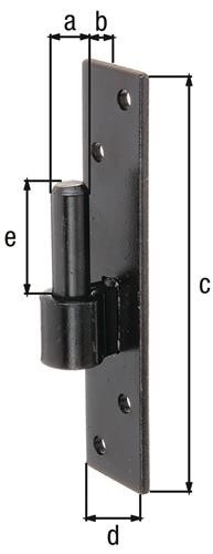auf Platte DI-Haken · Material: Stahl roh · Oberfläche: kataphoretisch aufgetragener schwarzer Tauchlack Weitere technische Eigenschaften: · Maß a: 16mm · Maß b: 13mm · Maß c: 180mm · Maß d: 40mm