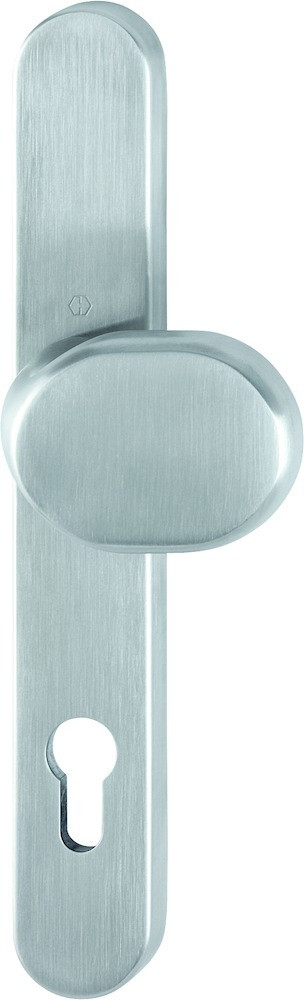 KnopfschmalschildHalbgarnitur, Außenseite / F69 Edelstahl matt / Profilzylinder 92 mm / HOPPE-Logo / mit Gewindeeinsatz