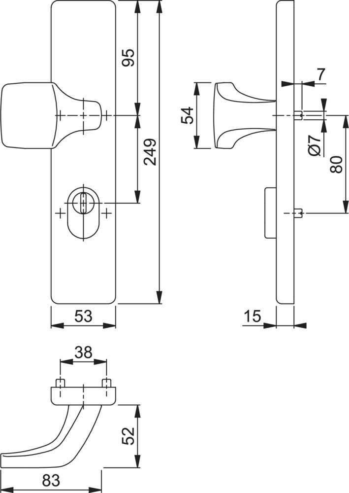 | Breite Türgriff (außen) | 83 mm |