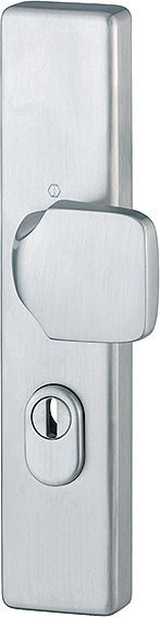 Halbgarnitur Außenseite, HOPPE Schnellstift / für Kombi-Schutz / F69 Edelstahl matt / 8 mm / Profilzylinder 72 mm / 37-42 mm / HOPPE-Logo / für ES1 (SK2)