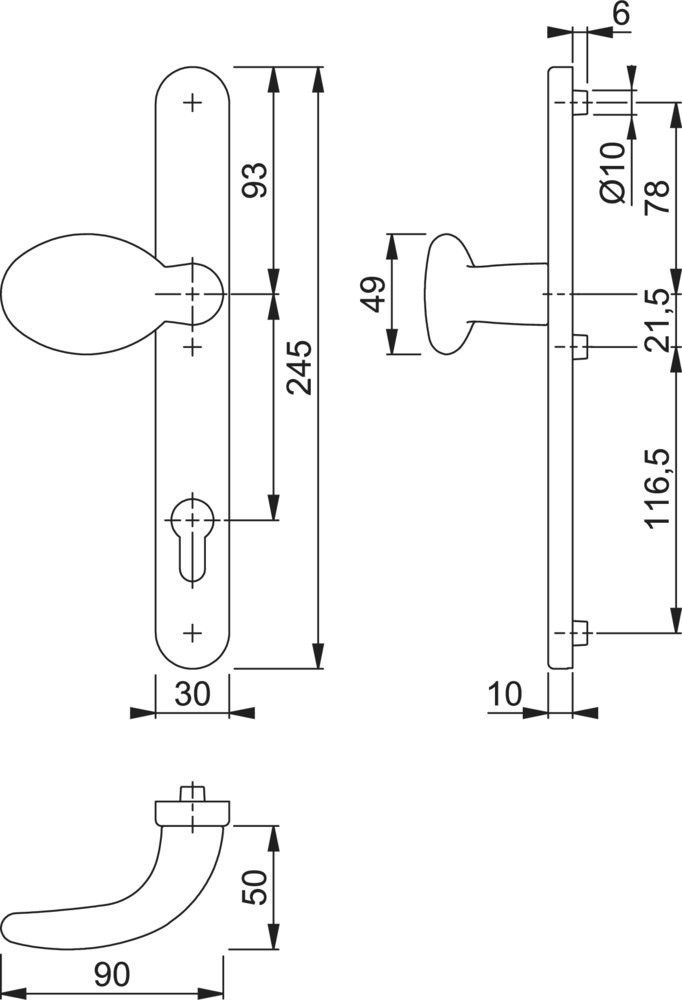 KnopfschmalschildHalbgarnitur, Außenseite / F1 Aluminium silberfarben / 8 mm / Profilzylinder 92 mm / 72-82 mm / HOPPE-Logo